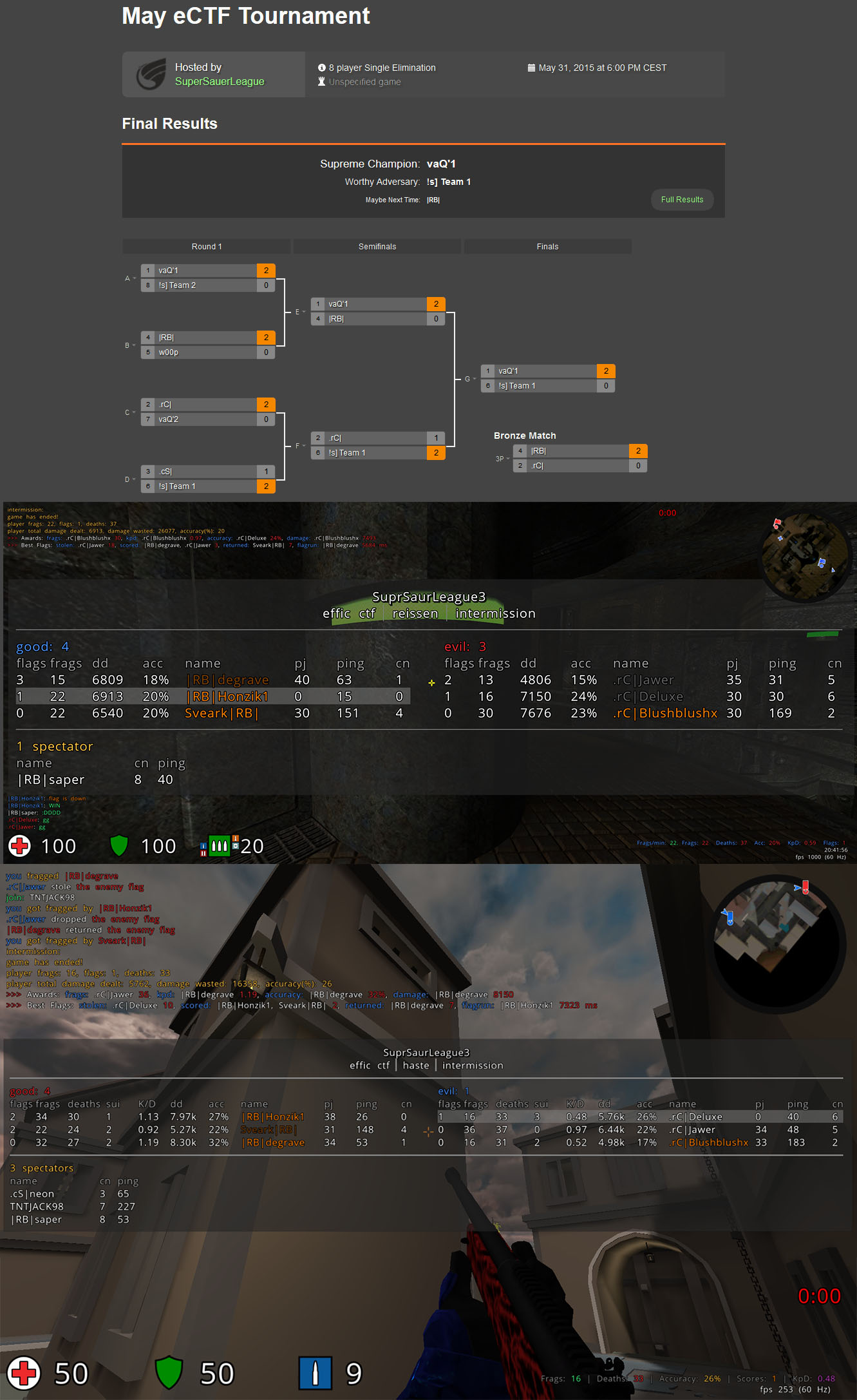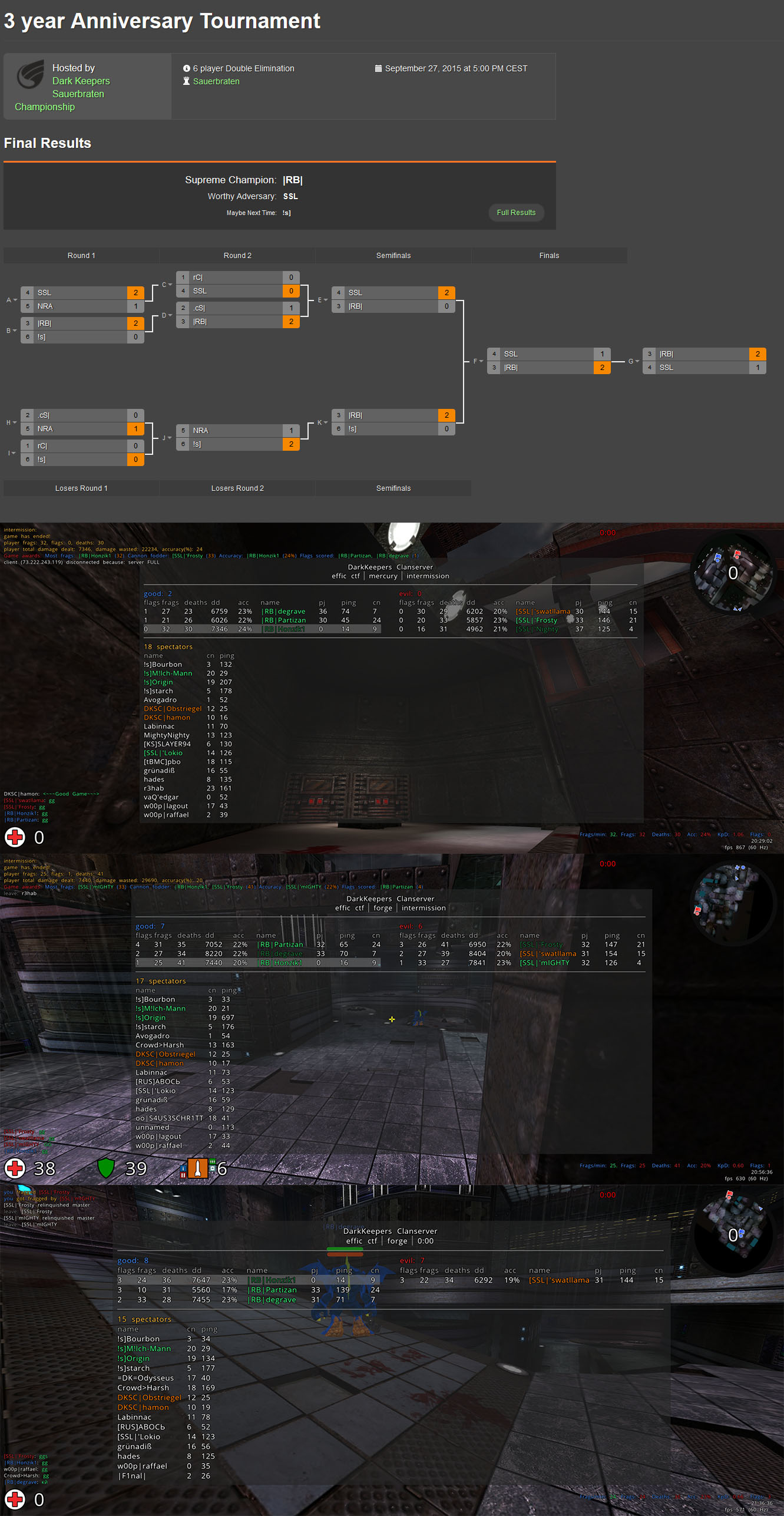 Big surprise was the performance of the DKs. In my personal opinion, the best they ever had. They gave all their opponents quite the tough match, kicking the sQs into the loser bracket and later on eliminating team xtra and even RB2 in the loser bracket. Still in winner bracket, they even made the sp4nk's life hard, sending them to overtime and even winning a map against them. Even the lost maps were mostly lost by only a flag or two, keeping the scores tight and the games tense.