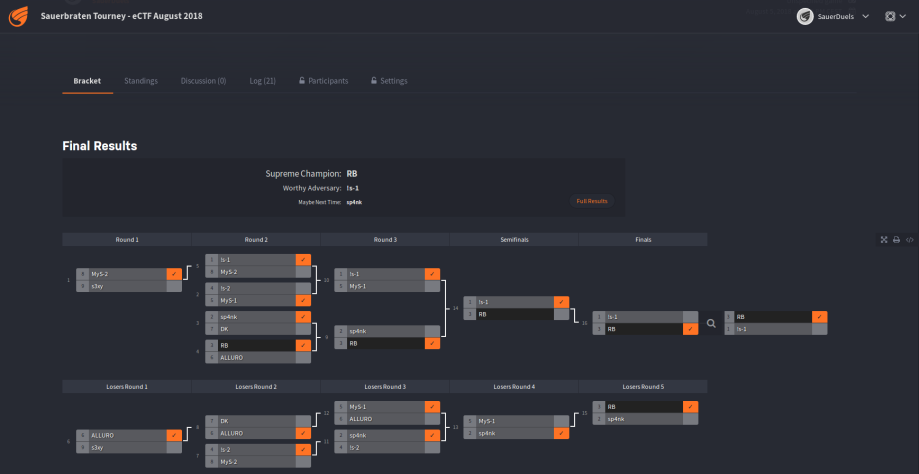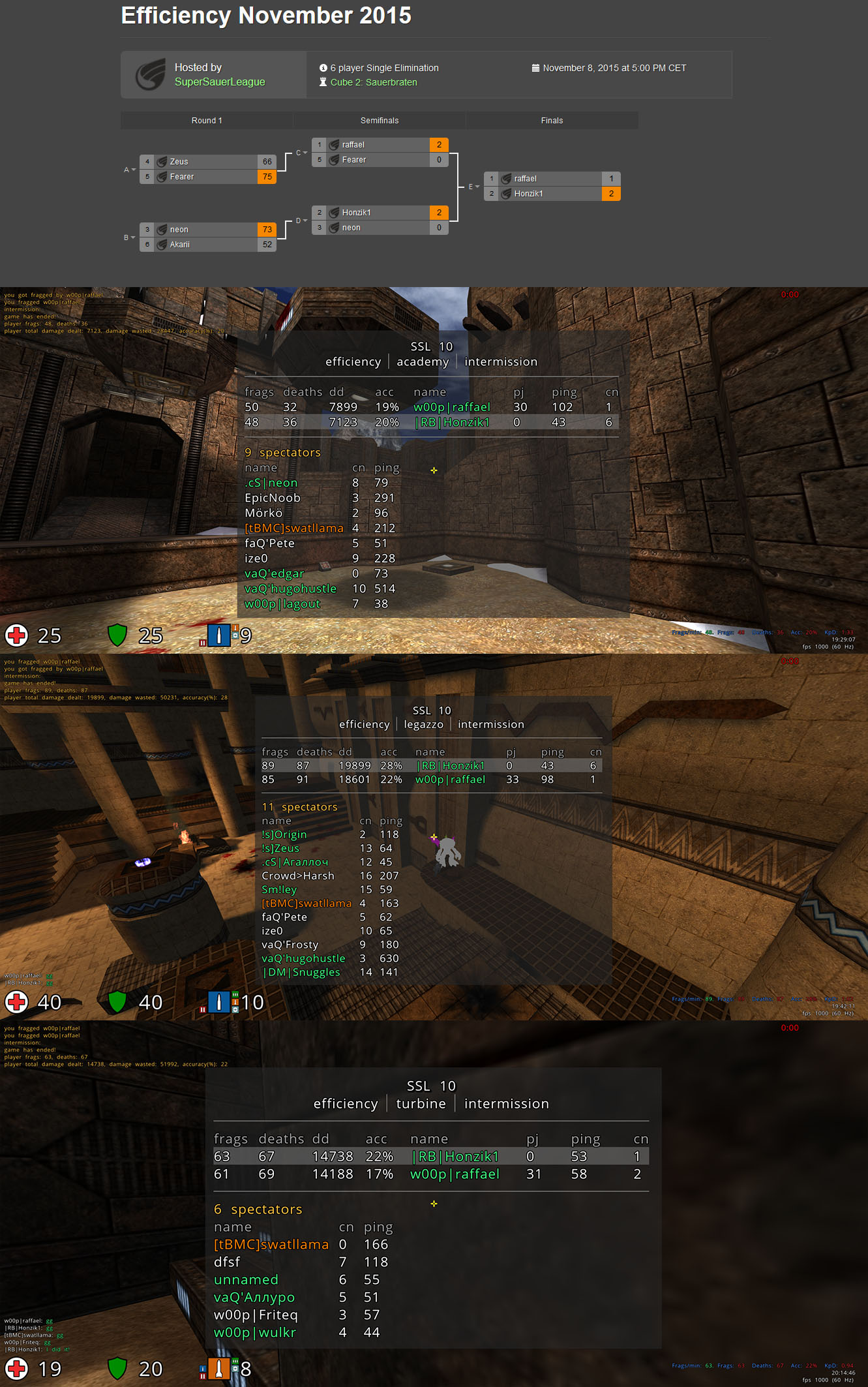 June 29, 2018Last SauerDuels event went good for us. Partizan competed in one of the hardest effic 1vs1 tournaments lately. Fighting with 3 sp4nks (starch, notas and Frosty) for place in the finals, he managed to win group stage without much pain. In finals he met raffael, the winner of the group B. After 3 very hard and exhausting games, raffael won. Next time we are waiting for the title, comrade!
